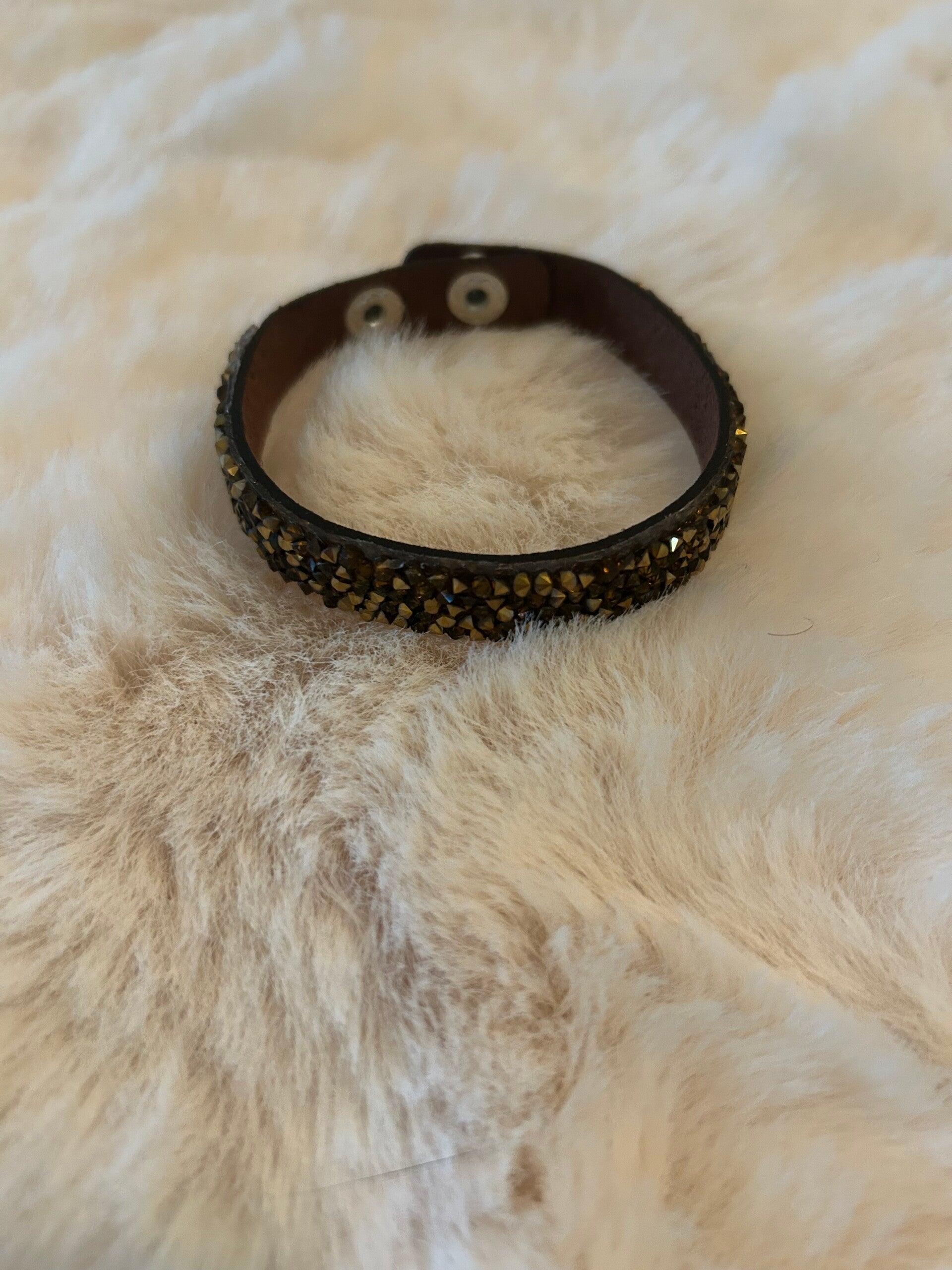 Leuke bruin lederen armband met steentjes!